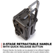 Hassle-free transport comes courtesy of NANUK's two-stage retractable handle. Posture-friendly, the handle can be adjusted to two different heights and offers easy, one-handed open and close with its quick-release button.