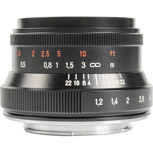Blending a compact form factor with a bright optical design, the 35mm f/1.2 Mark II Lens from 7Artisans is a classic prime well-suited for every day, available light photography. This stylish black portrait-length prime is designed for APS-C-format mirrorless cameras and offers a 52.5mm equivalent focal length, and the fast f/1.2 maximum aperture suits working in low-light conditions and offers increased control over depth of field for working with selective focus techniques. The manual focus design permits working with subjects as close as 11' away, and its rounded 10-blade diaphragm contributes to a pleasing bokeh quality, an ideal combination for portraiture.