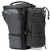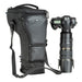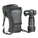 The Digital Holster 50 V3 is a specialized holster designed for a gripped camera body paired with a 70-200mm f/2.8 lens, even with its hood reversed. When collapsed, it accommodates a 70-200mm f/2.8 with the hood attached in shooting mode.