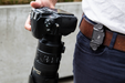 Clip for rigidly carrying any camera on any belt, strap, or bag.