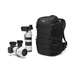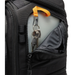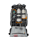 Inside the back door, you’ll find zippered transparent organization pockets on top of a CradleFit laptop pocket that fits up to a 16'' MacBook Pro. The side doors have large exterior stretch pockets that hold up to a 1L bottle and are reinforced at the bottom for tripod support. Additional loops and pockets on the top of the sides allows for quick access to items and secure tripod attachment. The backpack stands upright on its own, making it easy to handle and access your gear.