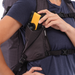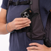 Compatible will all brands of camera clips, with the added comfort of padding behind the clip. Straps feature a zippered phone pocket that fits an iPhone Max, plus an expandable accessory pocket for gadgets that can also hold a water bottle. They include hidden routing for a 2-way radio speaker/mic which you can also use for a water bladder hose.