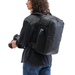 The pack features swing-around rear access that allows the bag to hang securely off your body like a floating workbench, plus it has quick top access as well. Two exterior side pockets will fit a tripod/gimbal and a large water bottle, and the bag includes a removable WeatherWrap rain cover for extra protection on wet weather days. The pack is international carry-on compatible.