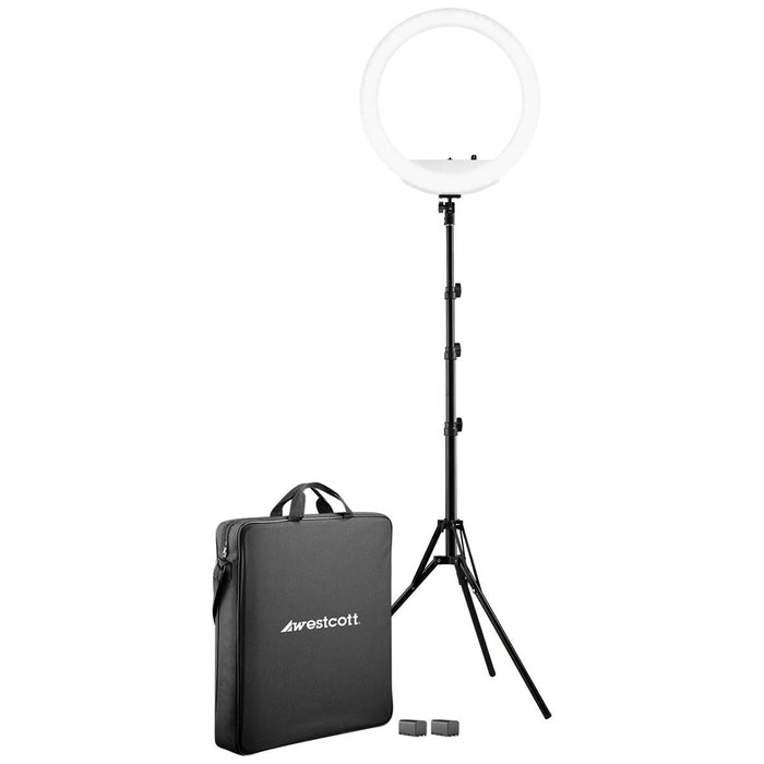 Ideal for vlogging, selfies, makeup and cosmetic shots, hair styling, portraits and more, the 18" Bi-Color LED Ring Light Kit from Westcott is built around a circular light source with, color, light intensity, and power options. With user-friendly controls and a hassle-free setup, featuring adjustable color temperature, high color accuracy, and built-in diffusion, this LED ring light allows you’ll create soft, beautiful lighting that fills in shadows on the face with iconic catchlights in the eyes.