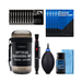The Optical Cleaning Kit includes a mini air blower, 2-in-1 lens cleaning pen with carbon powder tip and filament brush, cleaning cloth, alcohol-free lens cleaner, and wet wipes for thorough and safe cleaning of lenses and camera surfaces.