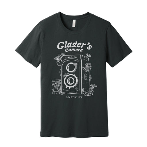 Glazer's Mushroom Camera T-Shirt Dark Gray Heather - Womens Small