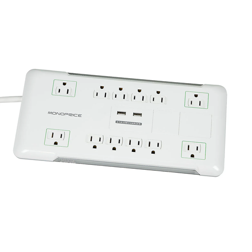 Monoprice 12 Outlet Power Surge Protector with 2 Built-In USB Charger Ports, 6ft Cord - White