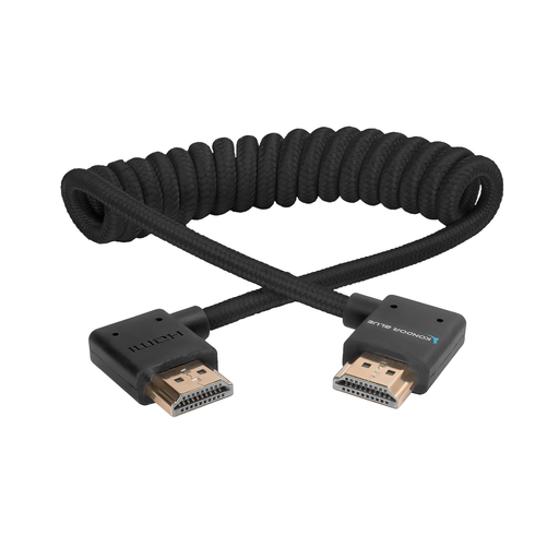 Kondor Blue Coiled Right-Angle High-Speed HDMI Cable for On Camera Monitors, 12" to 24" - Raven Black