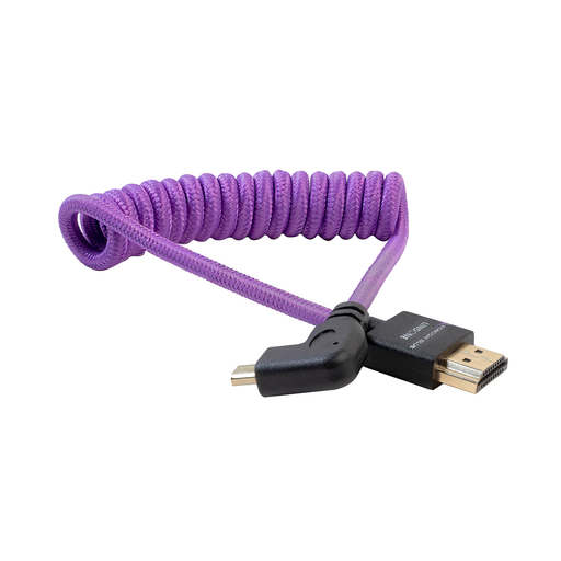 Kondor Blue Gerald Undone Braided Coiled High-Speed Right-Angle Micro-HDMI to HDMI Cable for Canon R5 & R6 Cameras, 12" to 24" - Limited Purple Edition