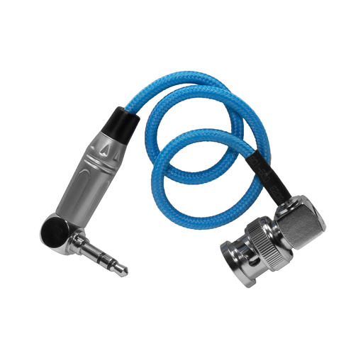 Kondor Blue BNC to 3.5mm Right Angle Time Code Cable for Broadcast Cameras, 10" - Kondor Blue