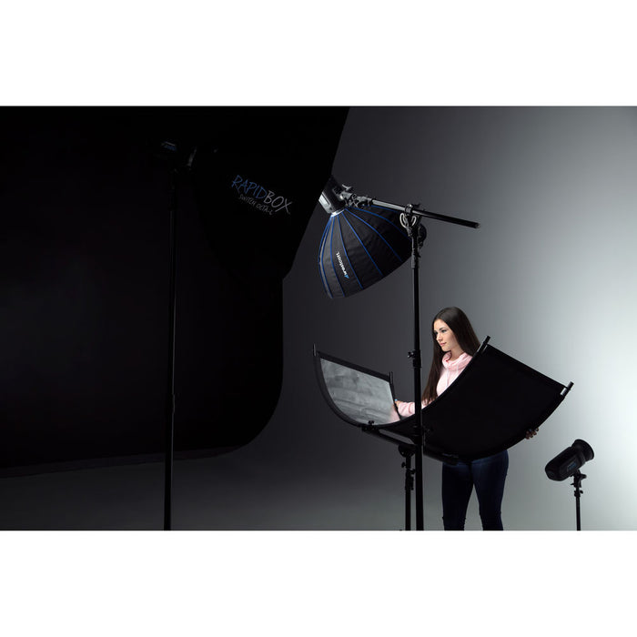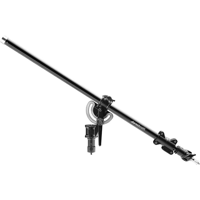 Designed for overhead lighting, microphone positioning, and extending light stand height, this compact aluminum boom arm telescopes from 31" to 57" and supports up to 11 lbs. at maximum extension. Unlike traditionally heavy and bulky boom arms, this Mini Boom Arm is a compact and easy-to-use mounting tool for both studio and location shoots.