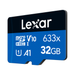 | Product Specs | Lexar 32GB BLUE Series High-Performance 633x UHS-I microSDHC Memory Card with SD Adapter Specs:1 4K UHD video Based on 128GB, 256GB, and 512GB capacities only. 2 Up to 100MB/s read transfer. Speeds based on internal testing. Actual performance may vary. x=150KB/s. |