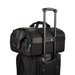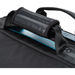 Rear strap slides over the extending handle of a rolling case for quick and secure piggyback travel. Bottom mounted straps (shoulder bags only) allow bag to be secured vertically to fit through tight spaces and doorways.