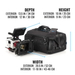 - Camera Gear Capacity – Professional camcorders, cinema cameras and ENG rigs up to 18 inches (46 cm) long, from Sony, Canon, RED, Blackmagic and others, with matte box and other accessories attached.