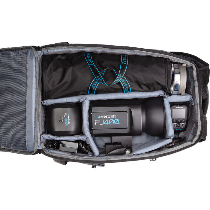 Equipped with a large, central storage compartment featuring removable dividers, the included backpack is ideal for traveling comfortably with your FJ400 gear. It features various zippered compartments for storing smaller accessories, a separate internal compartment with three padded sleeves for storing laptops and tablets, a convenient water bottle pouch, a tripod holder with retention straps and more.