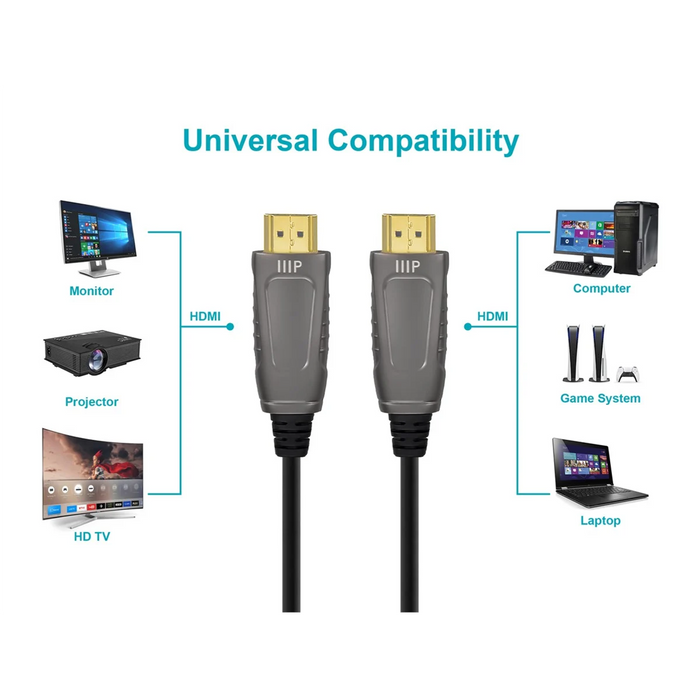 The Monoprice SlimRun AV 8K Certified Ultra High Speed Active HDMI Cable enables full 8K performance over distances up to 65 feet. These cables are certified by an HDMI authorized testing center and support up to 8K@60Hz or 4K@120Hz resolutions, with up to 48Gbps bandwidth and all other features found in the HDMI 2.1 specification. These cables feature next gen fiber optic technology, which makes it the perfect choice for the latest gaming consoles, including the Sony PlayStation® 5, PlayStation 5 Digital Edition, Microsoft Xbox Series X, and Xbox Series S.