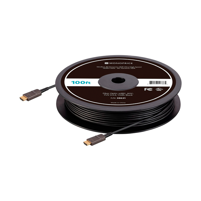 Monoprice 8K Ultra High Speed Fiber Optic HDMI Cable, 100' - Black