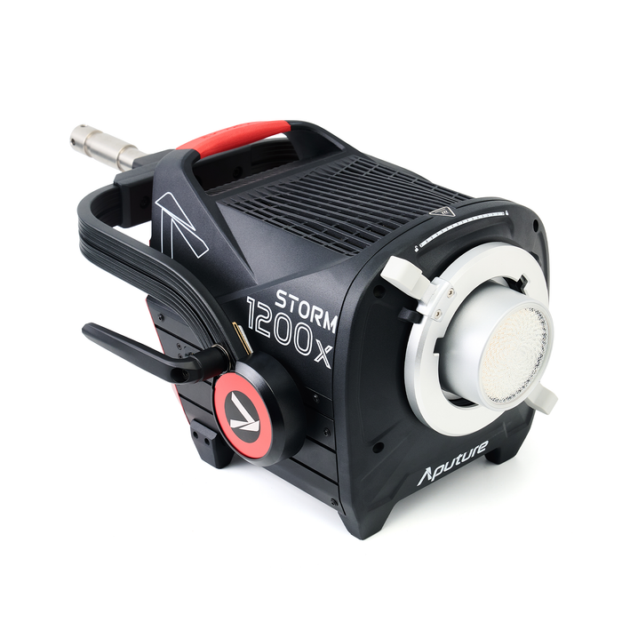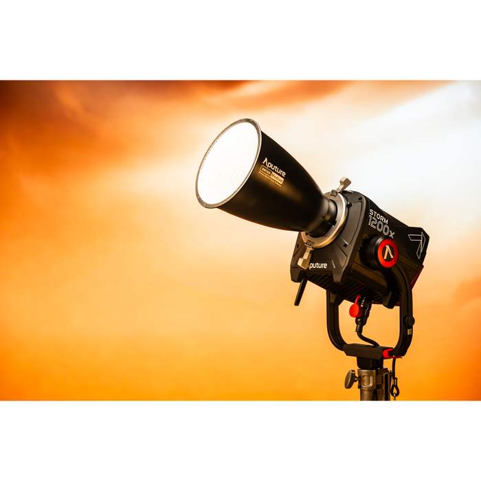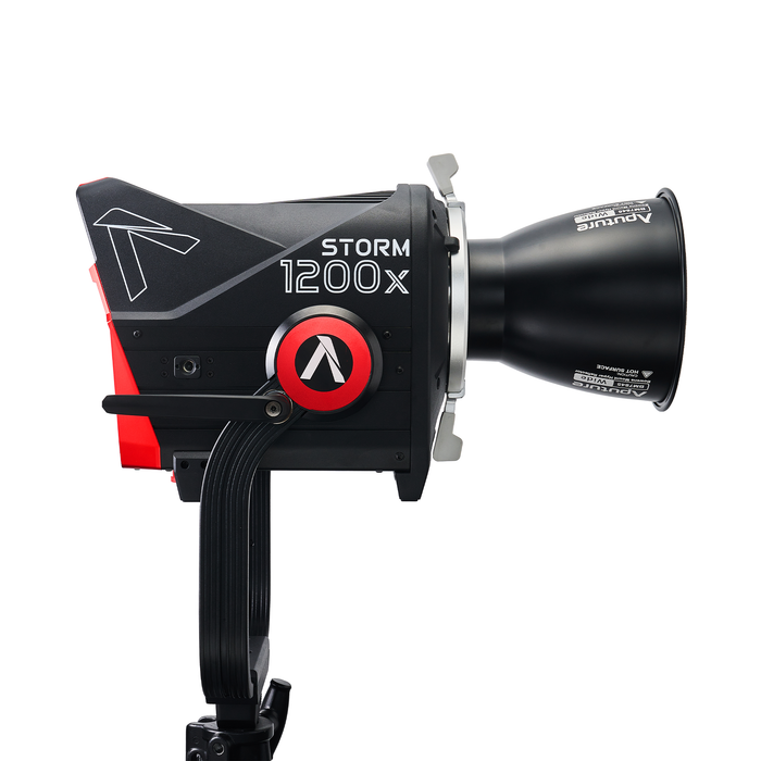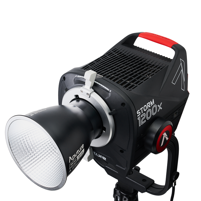 Introducing the Aputure STORM 1200x, Aputure’s first light in our new STORM family of cutting-edge workhorse point-source fixtures. As a 1,200W dual-color point source fixture featuring our breakthrough BLAIR LED chipset, a ProLock locking Bowens mount, and advanced dimming technology, the STORM 1200x is a feature-packed fixture suitable for a tremendous range of professional imaging applications from high-end film productions to small-crew video or photo shoots.