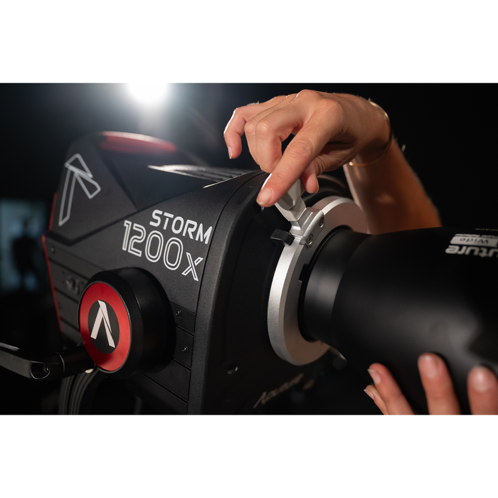 Armed with a newly designed ProLock locking Bowens mount, the STORM 1200x can support standard Bowens mount modifiers while maintaining an easy coupling procedure for heavier modifiers that reduces the need to make rotational adjustments with accessories to achieve a secure, optically aligned lock.