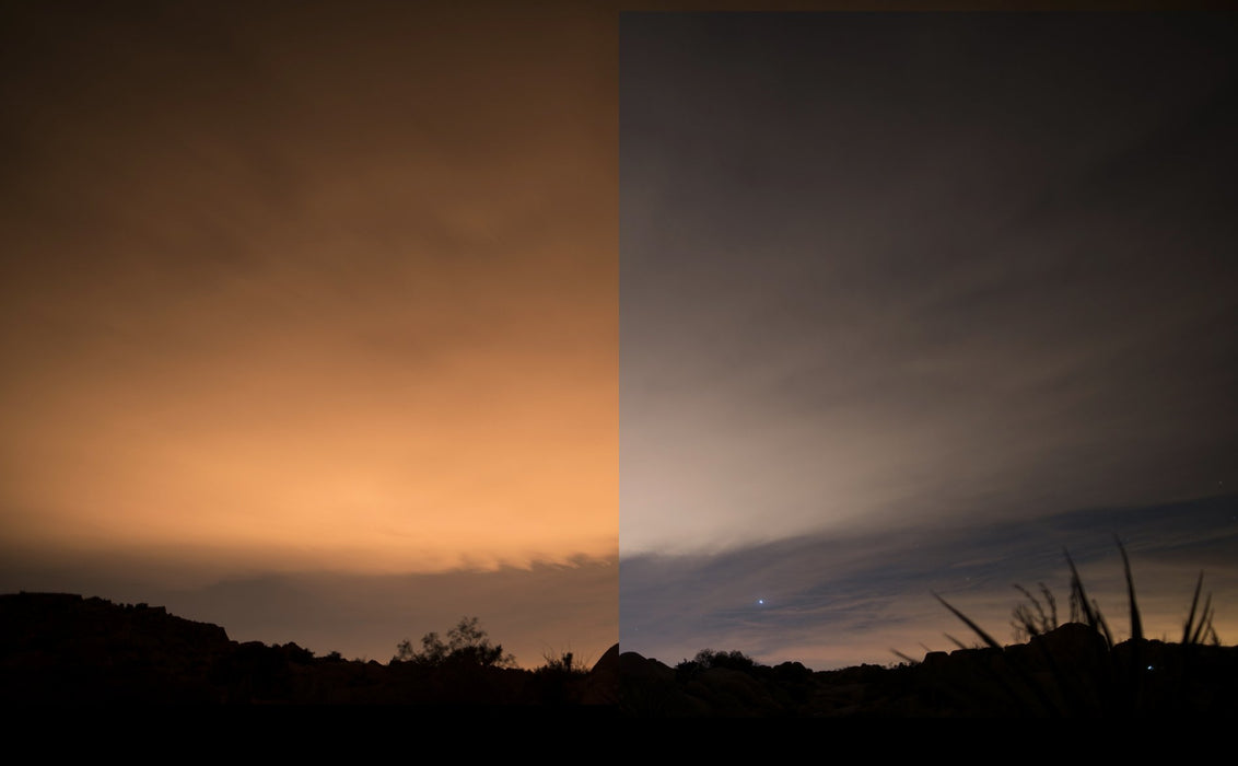 Eliminating light pollution in post-processing is a destructive type of editing, whereas with a Night Sky filter light pollution is eliminated non-destructively.