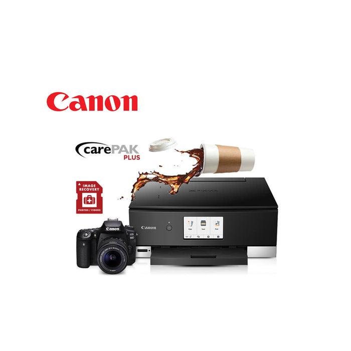 Canon CarePAK PLUS offers protection from accidental damage such as drops, spills, power surges, and more including normal wear and tear, beyond the standard warranty period. With a CarePAK PLUS, a damaged product will be repaired to good working condition or replaced with an equivalent product.