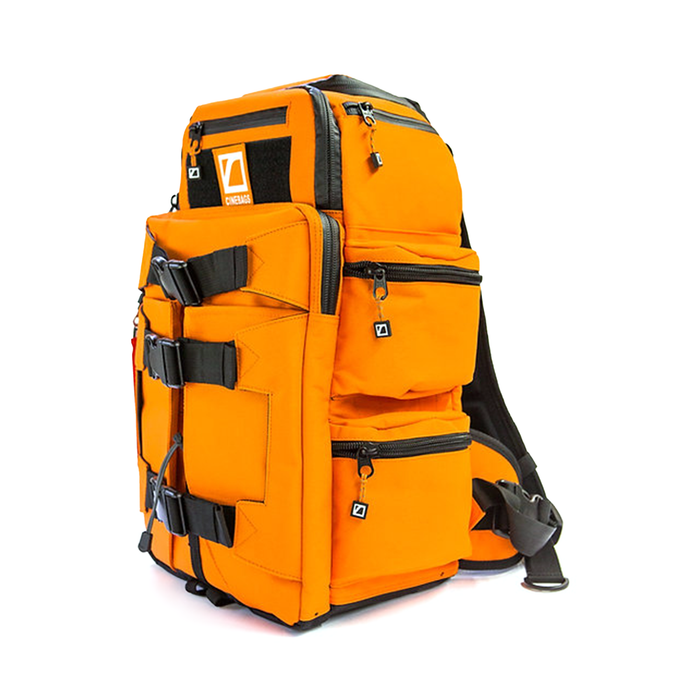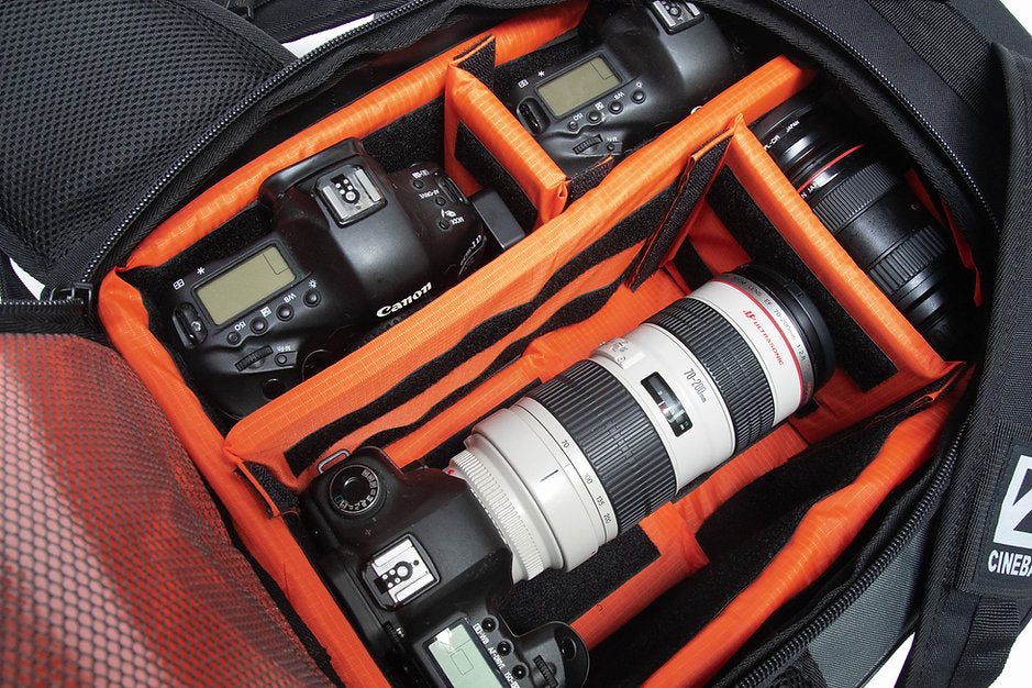 The CB25 Revolution Backpack is a preferred choice in the TV and film industry, as it offers unparalleled flexibility and a customizable interior to hold cameras, lenses, accessories, and up to a 17" MacBook Pro. While able to accommodate a full camera setup, it remains compact enough to fit in most overhead bins, making it the ultimate location bag. The foam harness and removable hip belt evenly distribute the weight of your equipment, while the nine dividers and hook-and-loop fasteners allow for a personalized setup. With a dedicated compartment for a 17" MacBook Pro and multiple exterior pockets for accessories and cables, this backpack has everything you need. Its waterproof material and sturdy design make it suitable for any weather conditions, while the zippers and buckles securely hold the compartments in place during transport. Plus, it can even accommodate larger cameras such as RED, Blackmagic Design, Canon EOS, or ARRI models.