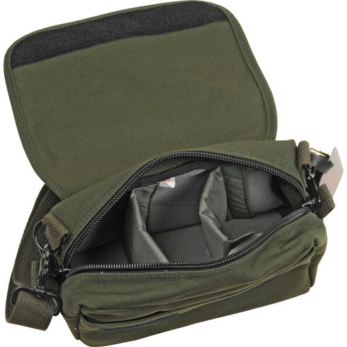 The black Domke F-5XB Shoulder/Belt Bag Limited Edition can be used as a camera bag, or remove the Gripper shoulder strap and thread it through the belt loop for an instant waist/hip pack. The bag can hold an SLR or rangefinder camera, one or two lenses, filters, film and accessories. There is a zippered, padded main compartment lined with touch fastener material, a long thin compartment on the front of the bag, and a U-shaped pad that makes a compartment for papers.