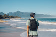 Outside, a 100% recycled 400D weatherproof shell keeps everything safe. 2 expandable external side pockets, an integrated luggage carry pass-through, and 2 straps for external carry. Zero-slop design with clean profile, all-custom hardware, and minimal dangling straps.