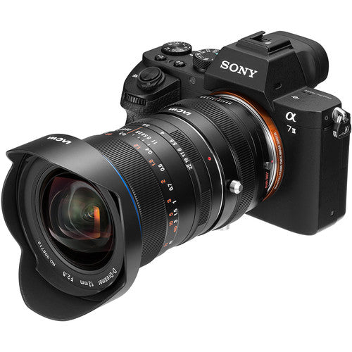 A carefully designed and patented optical system in the adapter converts the Laowa 12mm f/2.8 Zero-D to a 17mm f/4 lens with +/- 10mm Shift capability without any vignetting. The adapter is designed to use with Canon/Nikon mount lenses and Sony Full Frame E-mount cameras. It may also work with other ultra-wide angle lenses.