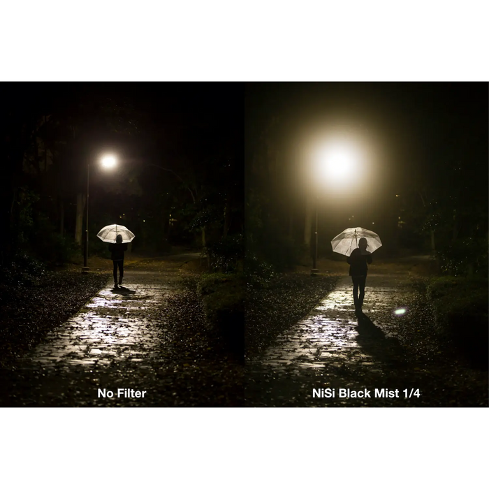 Create the perfect atmosphere for your photography or videography with NiSi Black Mist. Black Mist filters add an ethereal glow around light sources while preserving the clarity of images. Get the cinema look that reduces contrast, blooms, and softens the light from strong light sources while smoothing blemishes without affecting color balance. Give your images or video the Black Mist look.