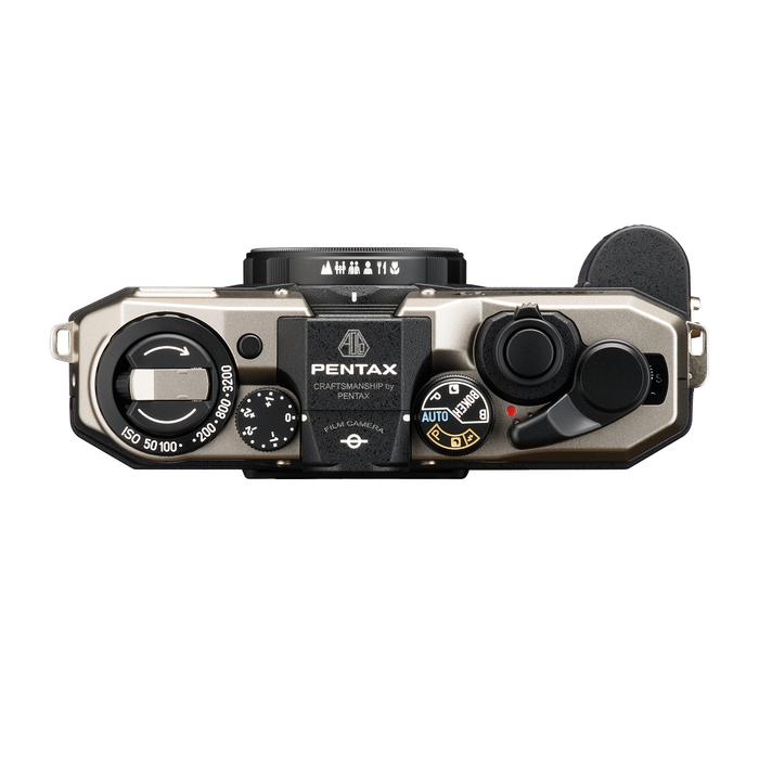 In addition to the distinctive image quality created only by a film camera, the design of the PENTAX 17 incorporates manual operations unique to film photography — a selectable zone-focus system, manual film winding, manual film advance lever, and exposure compensation and ISO sensitivity adjustments, each with their own dials. It has a retro-inspired design, with the top and bottom covers made of a solid but lightweight magnesium alloy to optimize the camera body’s rigidity.