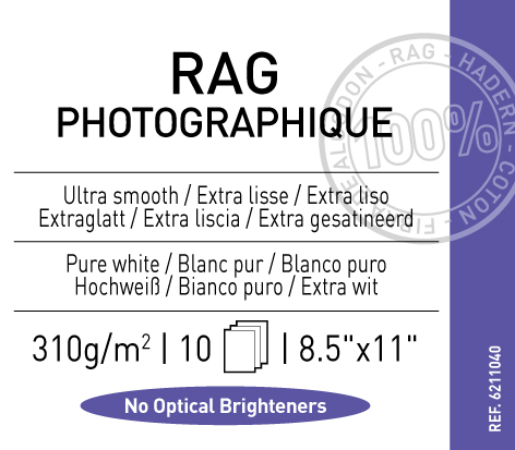 Canson Infinity Rag Photographique Matte Inkjet Paper, 310 gsm, 8.5 x 11" - 10 Sheets