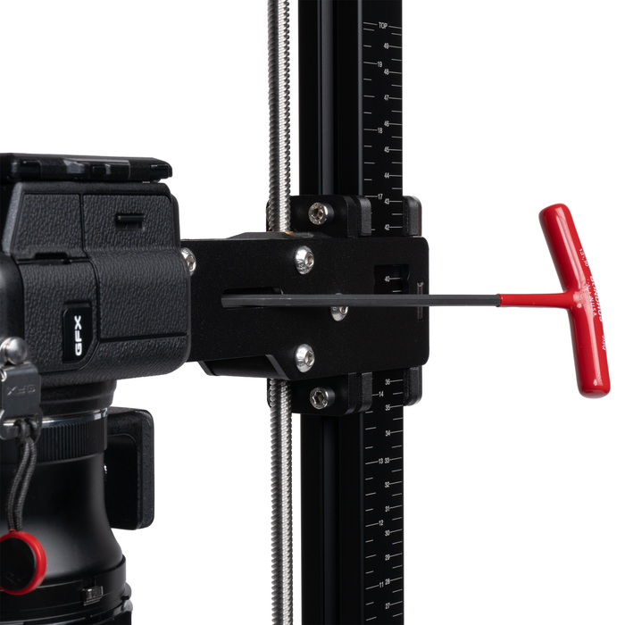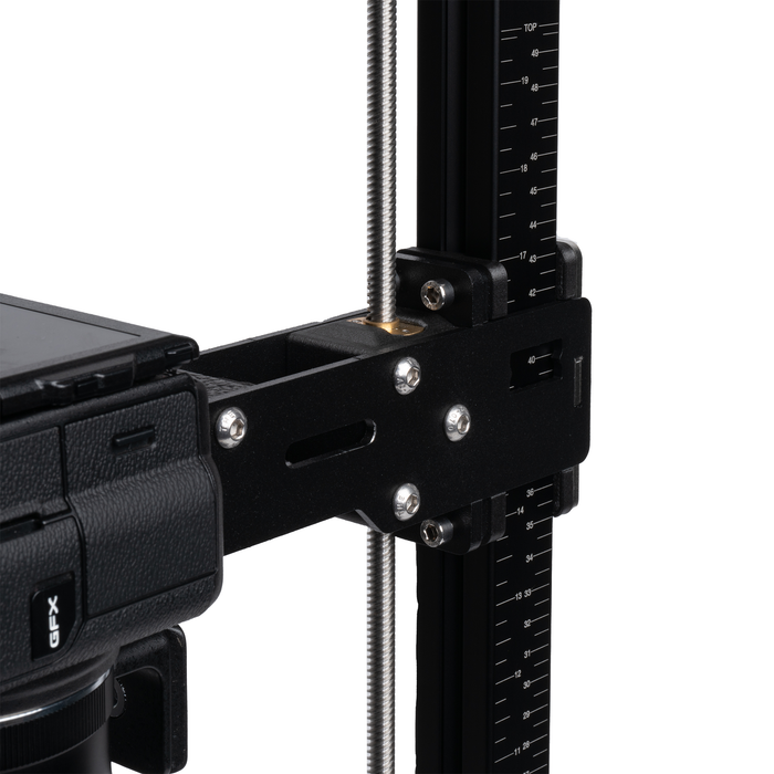 - Laser engraved scale (inches and centimeters) on the riser column so you can dial in where your camera needs to be when you’re scanning different formats
