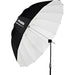 The 65" extra large Deep White Umbrella from Profoto has a soft white interior that helps produce even, diffuse light with soft shadows. The increased depth of this model allows for more precise control over the spread of the light. Also, it features 16 fiberglass rods for a rounder shape and more even light spread.