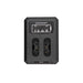 The Dually charger can be connected directly to a USB-A port (2.2A min), opening a world of possibilities for where and when you can charge your batteries including: at home, in a car, while traveling, and more. You can use the Dually charger with the included AC adapter and a common household outlet or from any USB-A power source providing a minimum of 2.2A, such as a power bank, phone charger, laptop, etc. Because the Dually can charge two batteries simultaneously, it is a convenient way of keeping the included battery charged along with the battery that came with your camera. Of course, it can charge one battery at a time when needed. For your convenience, the Dually is smaller than most single-slot battery chargers!