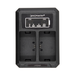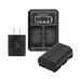 The Dually charger can be connected directly to a USB-A port (2.2A min), opening a world of possibilities for where and when you can charge your batteries including: at home, in a car, while traveling, and more. You can use the Dually charger with the included AC adapter and a common household outlet or from any USB-A power source providing a minimum of 2.2A, such as a power bank, phone charger, laptop, etc. Because the Dually can charge two batteries simultaneously, it is a convenient way of keeping the included battery charged along with the battery that came with your camera. Of course, it can charge one battery at a time when needed. For your convenience, the Dually is smaller than most single-slot battery chargers!