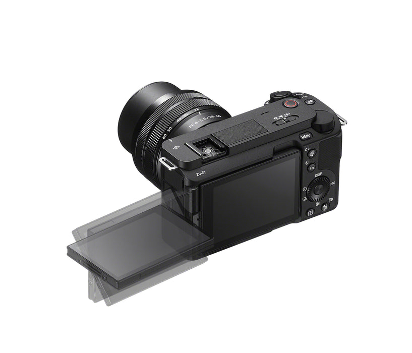 Sony Alpha ZV-E1’s Full-frame image sensor with extraordinary sensitivity and wide dynamic range together with advanced color science captures expressive, cinematic imagery. Innovative AI powered functions enable a solo creator to capture footage that would otherwise require a separate camera operator. ZV-E1’s unique combination of performance and convenience takes your creativity to the next level.