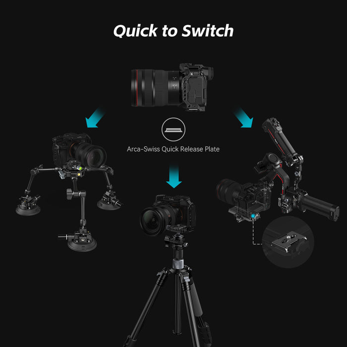 - Supports Arca-Swiss and DJI RS stabilizer quick release plate for quick switch between car, handheld and stabilizer shooting