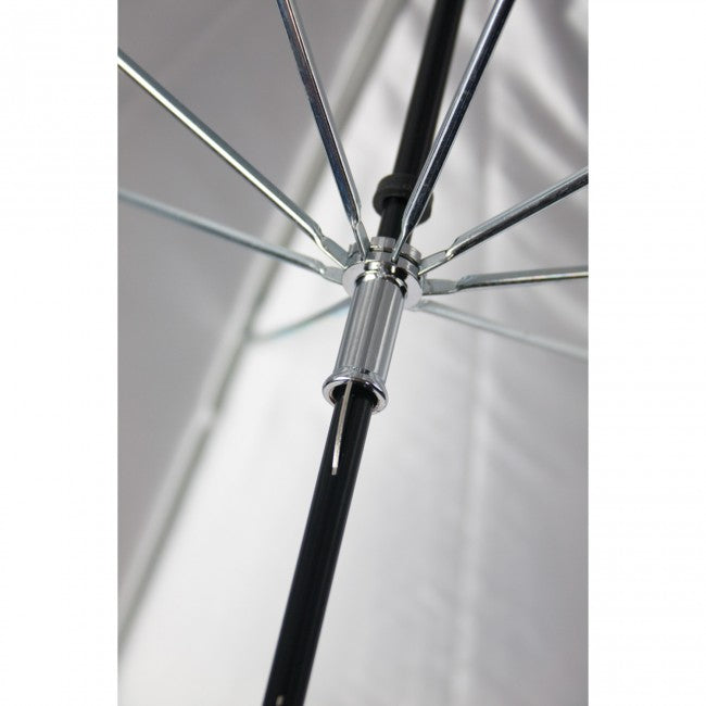 This umbrella is a great portable way to diffuse and soften light from a flash or strobe. In addition, it can be used as a bounce light source. Out of all the colored bounce umbrella's, this one will produce an image with the least contrast and the softest light because the majority of hard light is eaten up in the white slightly reflective material. For any on-location photographer, umbrellas are a great choice as they set up and tear down in seconds.