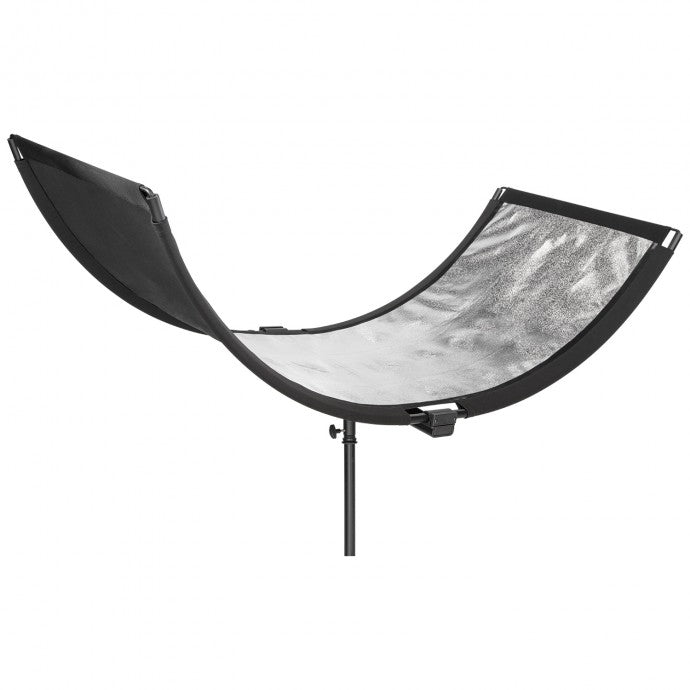 The Westcott Eyelighter 3 Silver, White, and Sunlight Fabric allows you to achieve beautiful clamshell lighting with a single light source. The Eyelighter's arc-shaped design matches the natural curvature of the human eye, resulting in seamless catchlight without unflattering shapes or gaps.