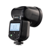 - Round head 80Ws flash provides even coverage both on-camera and off-camera