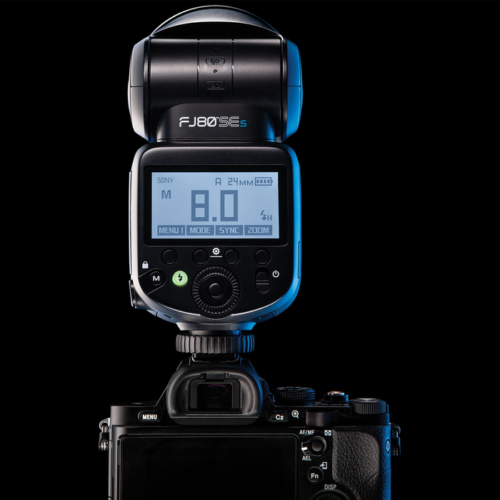 With its integrated 2.4 GHz transceiver, you can use the FJ80-SE S on-camera as both a flash and transmitter for the FJ Wireless Flash System. Control FJ400 and FJ200 strobes, FJ-XR receivers, and off-camera FJ80 speedlights devices directly from the hot shoe. When mounted off-camera, the FJ80-SE acts as a client speedlight. Trigger via an on-camera mounted FJ80, FJ-X3, or FJ-X2 Wireless Triggers. Its robust, all-metal hot shoe ensures a reliable connection to your Sony camera every time you shoot.